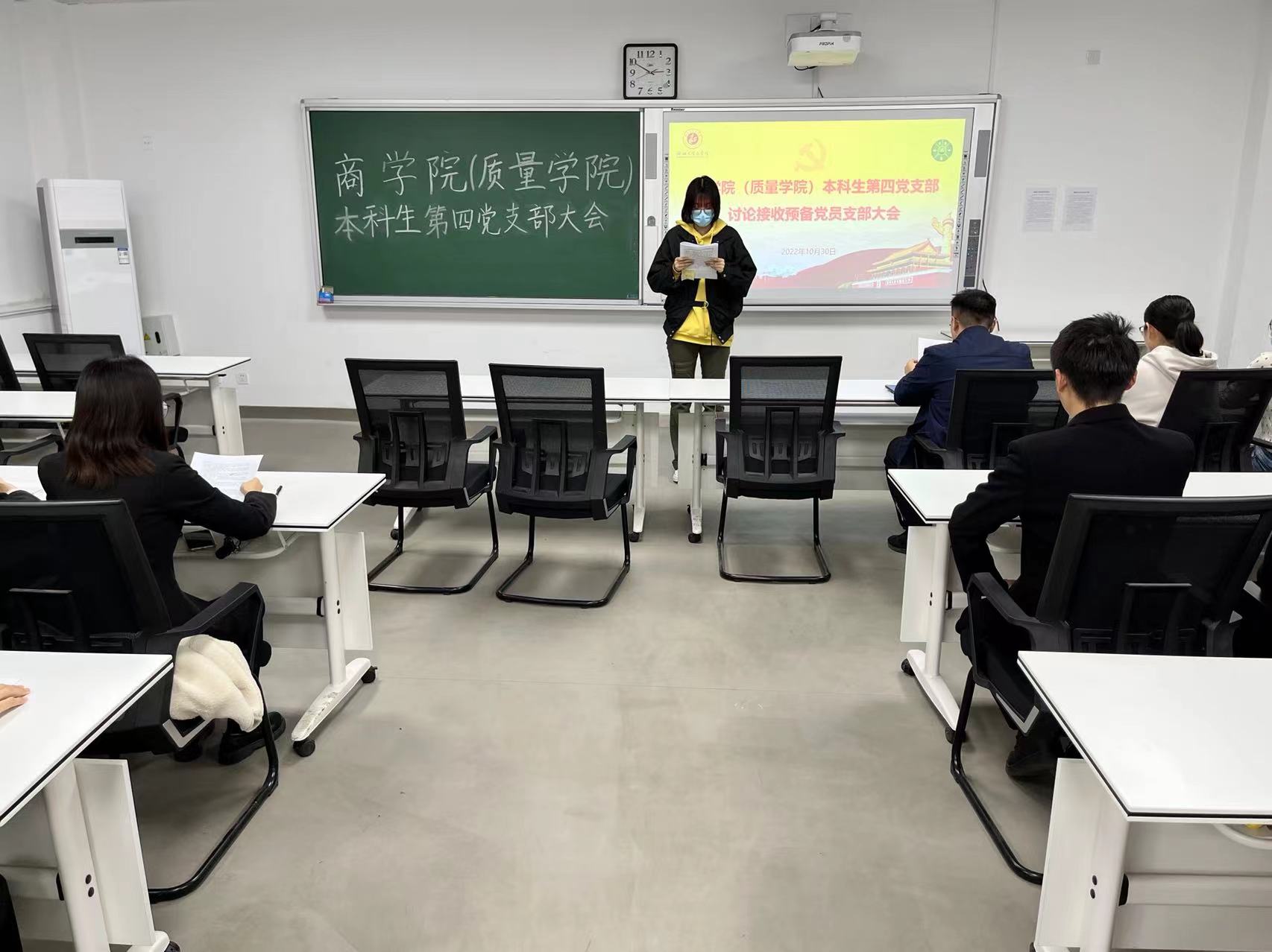 本次大会的主要内容是讨论接收纪筱彤等46名党员发展对象为预备党员。在各党支部书记宣读发展对象名单后,党员发展对象宣读其入党志愿书,就入党动机、对党的认识、本人履历等方面向党组织作了说明,表达了对党的忠诚,对党的事业的热爱以及成为中共预备党员的强烈愿望和愿意为党奋斗终身的坚定决心。期间,各党支部书记希望同学们能做到先人后己,不断提高思想觉悟,实现人生价值和社会价值。紧接着,入党介绍人介绍发展对象的培养教育过程及其基本情况,并表明同意介绍其加入中国共产党的意愿。随后,大会就46名党员发展对象是否符合入党条件进行了讨论,并采用无记名投票的方式进行表决,最后,一致同意吸收46名党员发展对象为中共预备党员。