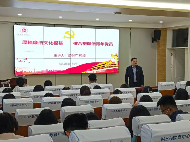 4月23日,555电影 于东校区1#707举办入党积极分子专题党课培训会。学院党委纪检委员、副院长梁树广以《厚植廉洁文化根基 做合格廉洁青年党员》为题,对全体入党积极分子进行了培训。