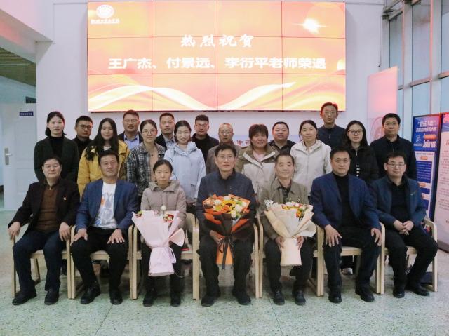12月7日下午,555电影 于东校区1#410为王广杰、付景远、李衍平同志举行荣退仪式,校党委组织部副部长冀相奎、校工会副主席肖佃军、校人力资源处副处长郭焕云,学院党委委员、办公室主任、组织员,教师代表以及新进教师出席仪式,仪式由院长杨宏力主持。