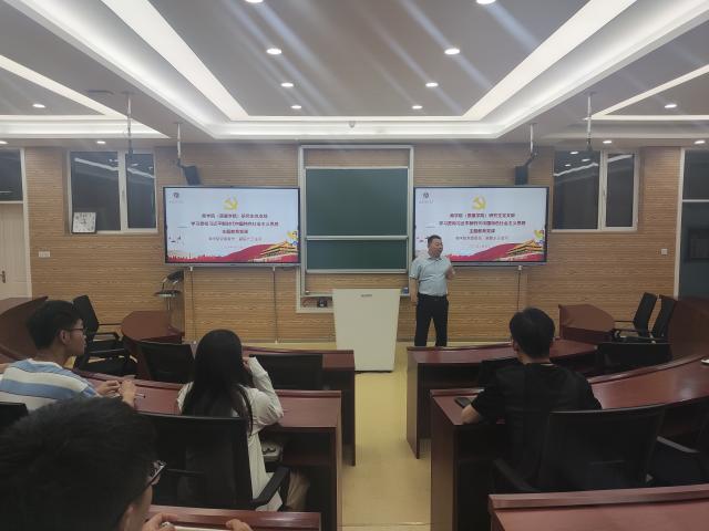 为进一步学习贯彻习近平新时代中国特色社会主义思想,在强化理论学习中推动主题教育走深走实。6月9日上午,555电影 于东校区1#708举办学习贯彻习近平新时代中国特色社会主义思想主题教育党课。本次党课由555电影 党委委员、副院长王金河主讲,应用经济学专业研究生全体党员和入党积极分子参加。