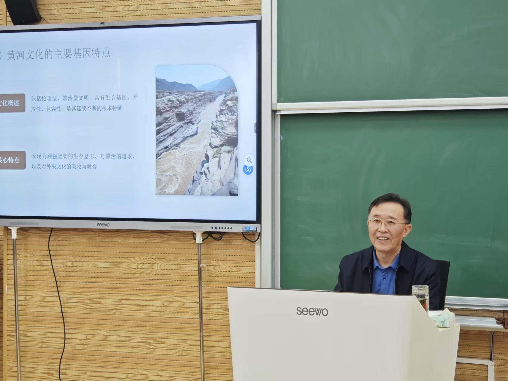 此外,关华还通过全面对比黄河文化与西方文化的不同特征,从人生境界的哲学维度出发,向同学们展示了黄河文化的独特性及它在中华文明中的重要地位。关华指出,中华文明能够历经数千载风雨而不断续的主要原因,在于其特殊的生存条件、深远的文化源头、独特的文明类型、明智的处事原则以及灵活多变的行为方式。