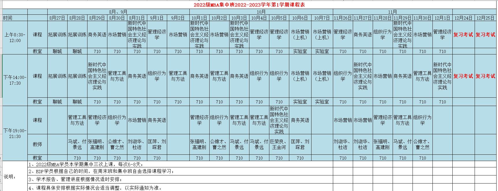 2022级MBA集中班2022-2023学年第1学期课程表