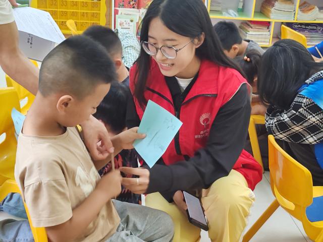班级相关负责人负责将本次活动内容编辑好,并确定好活动时间地点。在活动过程中,同学们巧妙地设置了心理疏导环节,以生动的心理小故事为小朋友们解析学业压力、人际关系以及受挫失败等各方面的困扰。此外,“心情卡片”的设计更是别具匠心,让孩子们通过色彩或图案表达内心的情感世界。小朋友们对此充满了好奇与热情,纷纷投入到活动中去,积极探索心理情绪之谜。随后,同学们根据小朋友们描述的不同情绪了解小朋友们的心情,并且告知小朋友们如何缓解自身不良情绪,并以问答的形式,引导他们学习心理健康的基本知识,让他们认识不同的情绪、接纳负面情绪,并学会控制情绪,解答他们心中的困惑,让他们对情绪有了进一步的了解。