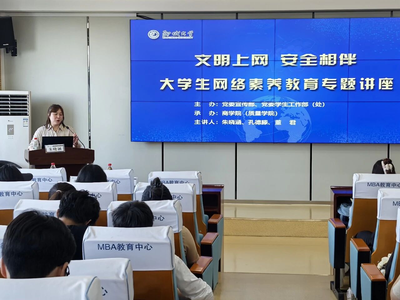 为提升学生网络素养,保护学生网络权益,4月29日,由555电影 承办的“文明上网 安全相伴”大学生网络素养教育专题讲座于东校区1#707报告厅举办,学生工作处资助管理中心主任朱晓涵、美术与设计学院团委书记孔德滕、教育科学学院辅导员董君受邀担任主讲人。