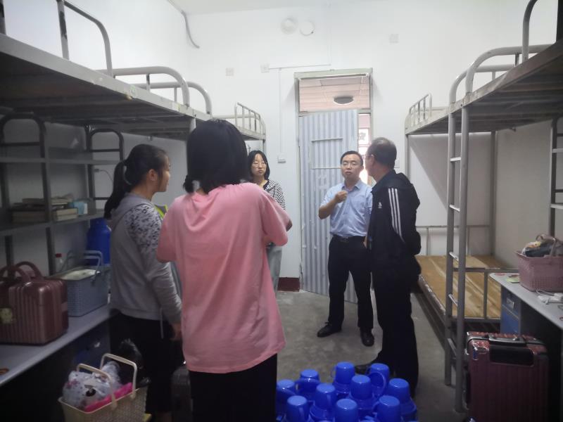 活动伊始,学院领导及辅导员来到同学们的宿舍,了解了同学们对大学的初印象,同时考察了宿舍的环境,确保宿舍无安全问题。随后,学院领导们及辅导员对同学们的生活状况、学习状况进行了详细地询问,同学们热情回答了老师的问题,纷纷表示开学之际学长学姐们的热情接待使他们在离家的第一天就感受到了别样的温暖,并对大学生活充满了憧憬与期待,这次与老师的交流更让他们感受到了浓厚的师生情谊。整个交流过程中,宿舍洋溢着欢快、轻松的氛围。