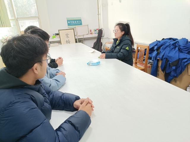 活动前期,韩亭亭对勤工助学岗位上的同学们进行了全面的了解,为走访活动做了充足准备。走访期间,韩亭亭对学生进行亲切的访谈,询问同学们在勤工助学时的心得体会以及助学岗位工作的完成情况,耐心倾听学生在日常学习和工作时遇到的困难和问题,与同学们一起探索、讨论着解决方案,帮助勤工助学的学生们摸清方向、找到答案,提出指导性意见。通过与同学们的交流,韩亭亭了解到大家不仅在工作期间解决了生活问题,而且锻炼了自身工作能力,更好地平衡了学习、工作与休息时间。韩亭亭重点强调,要弘扬劳动精神,培养吃苦耐劳的能力,抓住机遇、努力学习,磨练精神意志,增强责任感与使命感,为将来走出校园、踏入社会做好充分准备。