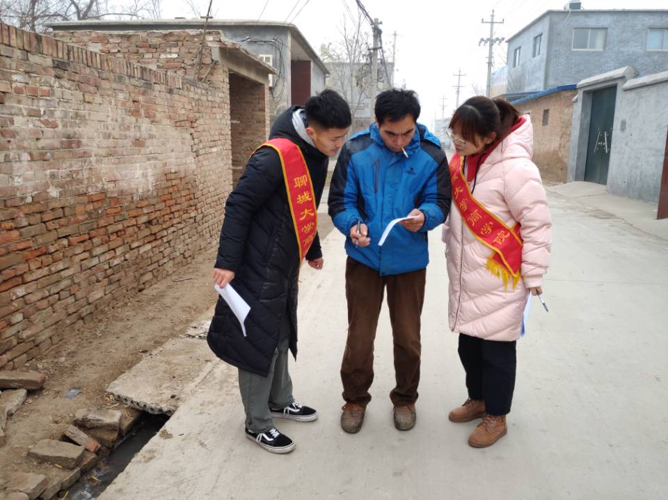 近年来,聊城市农机推广部门积极进取,认真负责,大力推广农业机械化,提升农机装备水平。活动前期,队员们根据了解到的农村实际情况整理调研问卷做好充分准备,经过不短时间的车程来到莘县的一个经济发展情况较好的村庄。整洁的水泥村路,家门外聊天的村民,迎面而来的就是浓浓的熟悉感。队员们来到聚集起来聊天的村民们中间,两人一组与村民们一起填写调研问卷。期间,队员们根据实际情况和问卷内容采访了解了村民们对于农业机械化的看法和相关建议。走街串巷,叩响村民们的家门、心门,队员们礼貌而耐心地讲解调研,村民们用心回复,并为同学们的调研活动点赞。调研最后,队员们与村民们谈政策聊发展,共同表示对新的一年有着更加美好的憧憬和期待。