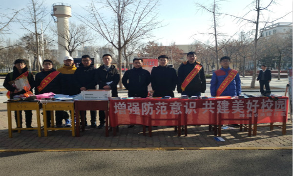 寒天催日短,风浪与云平。寒风凛冽的冬日,负责人带领活动成员布置活动场地,显目的红色横幅,直击心灵的标语,吸引来往的行人驻足询问。队员们为询问者积极讲解非法集资的危害,呼吁大学生警惕网络非法集资的诈骗,本次活动不仅有队员们耐心的讲解,更是通过摆放宣传展报、发放宣传资料等形式,多元化、多角度的创新宣传模式,揭露非法集资校园网贷丑陋背景的同时,更起到积极有效的宣传效果。既有利于增强学生的识别能力和风险意识,也有利于对存在非法集资想法的人员起到警示作用。随后,负责人、队员以及活动参与者在宣传标语的横幅上签名。活动最后,队员们与负责人合照留影。