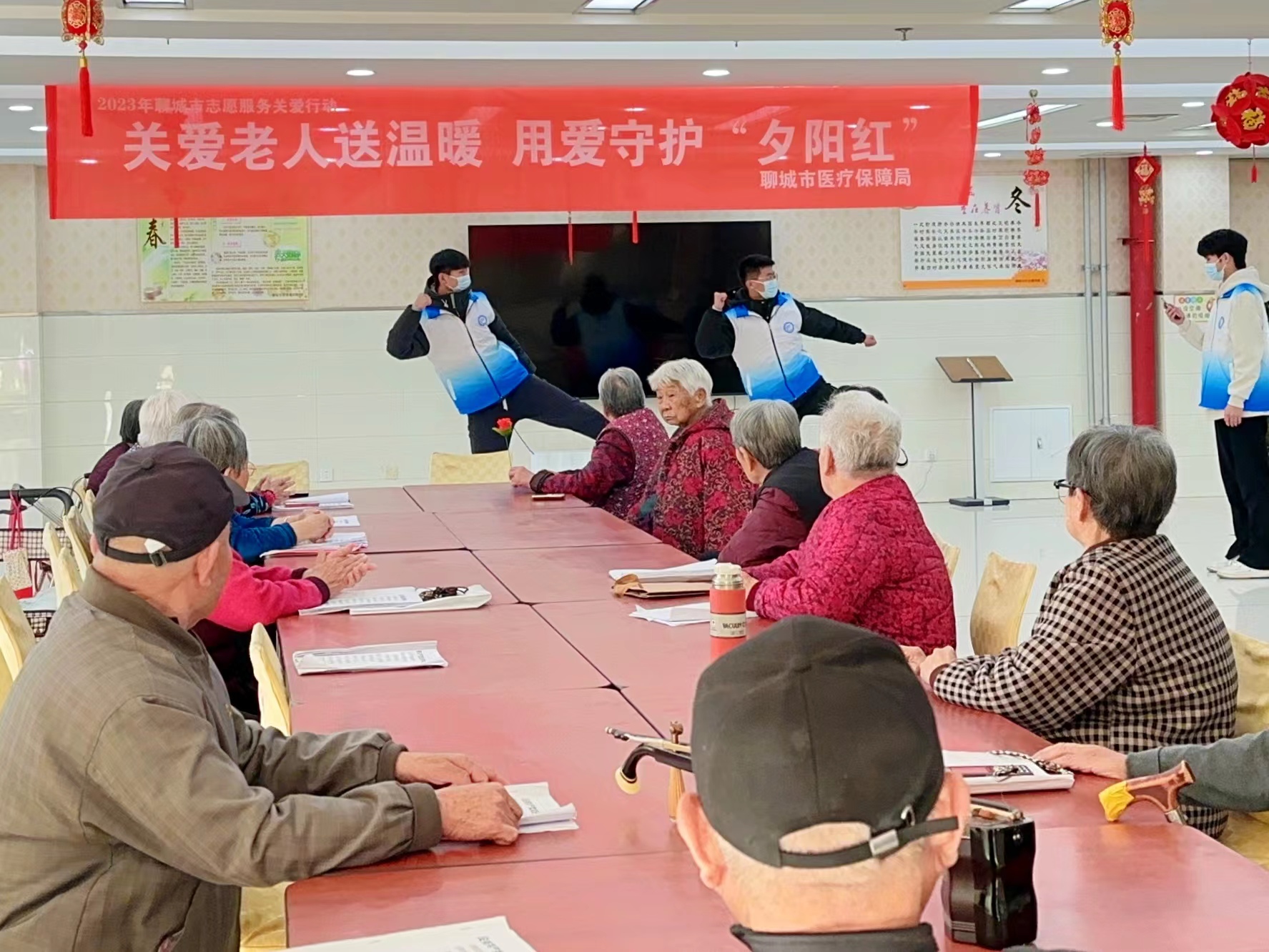 活动开始前,志愿者们摆放好桌椅,扶老人们有序入座,并给老人们分发新鲜水果。随后,志愿者们为老人带来了精彩的文艺表演,包括歌曲演唱、舞蹈、朗诵等,体现了志愿者们真挚的关怀与祝福。他们为老人们带来欢乐和温暖,赢得了老人们的掌声与笑容。阵阵欢声笑语过后,志愿者们与老人愉快地交谈起来,听老人们讲述他们的故事,了解老人们的内心感受,并详细询问老人的身体状况和生活情况,叮嘱老人保重身体健康,注意天气变化,及时增添衣物。