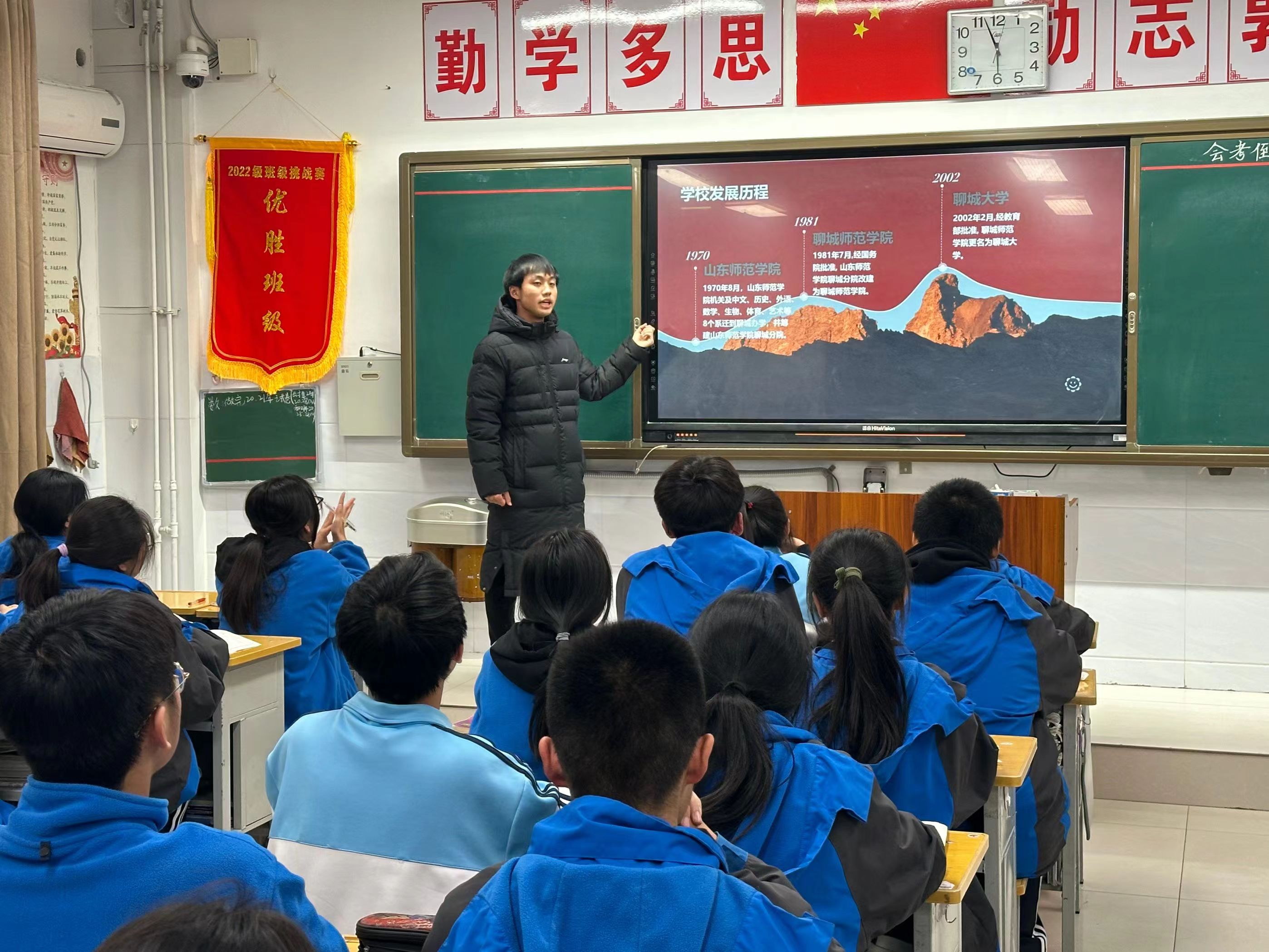 做聊大学子,为聊大代言。为展现聊大学子青春风范,提高555电影 的知名度,丰富聊大学子的寒假生活经历,近日,555电影 555电影 (质量学院)薪火传递队队员们来到母校聊城市第二中学开展了以“我为聊大代言”为主题的寒假社会实践活动。