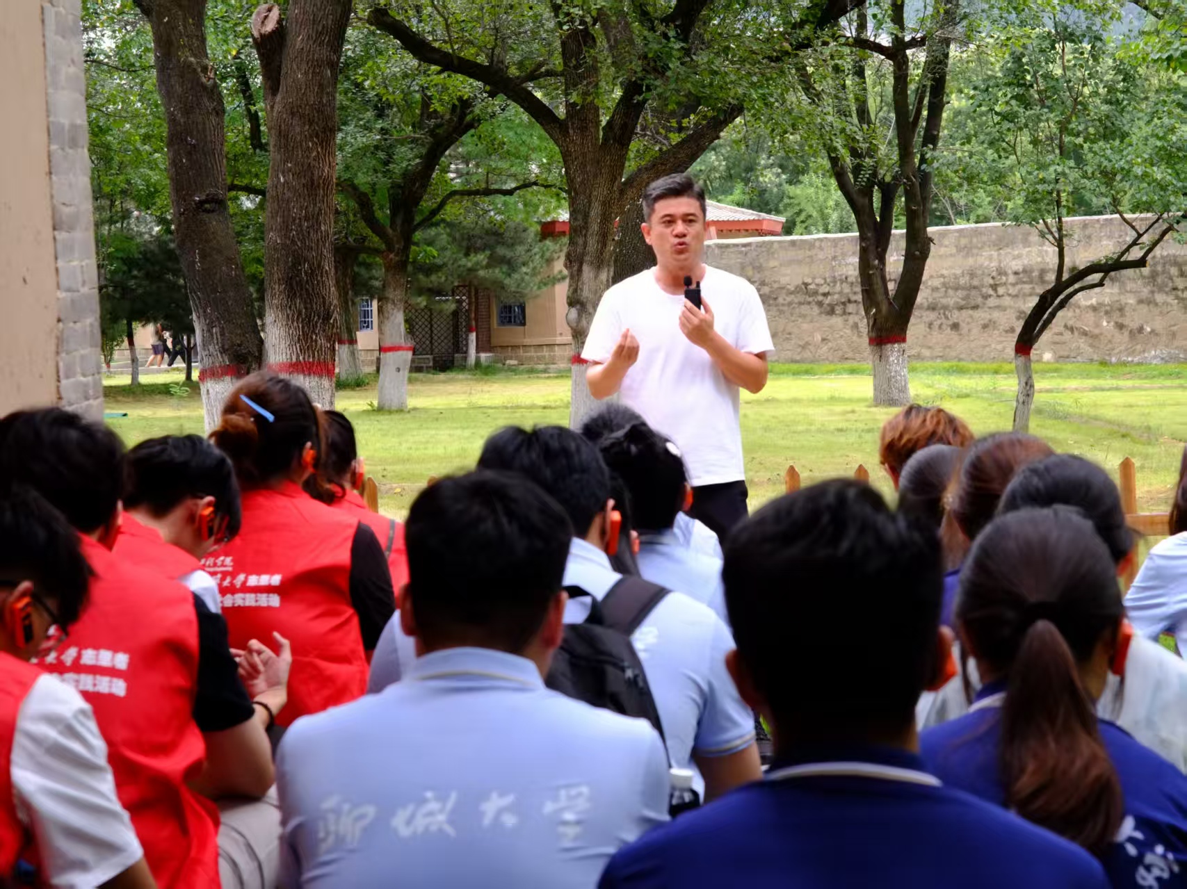 8月12日,555电影 555电影 “河韵红章”社会实践队跨越七百多公里来到革命圣地延安,开启了团队的红色寻根之旅。迎着晨光,团队成员徒步来到枣园革命旧址。这片静谧的土地,曾是中共中央转战陕北的战略支点,亲历了中国革命从坚韧防御迈向光辉反攻的伟大转折。