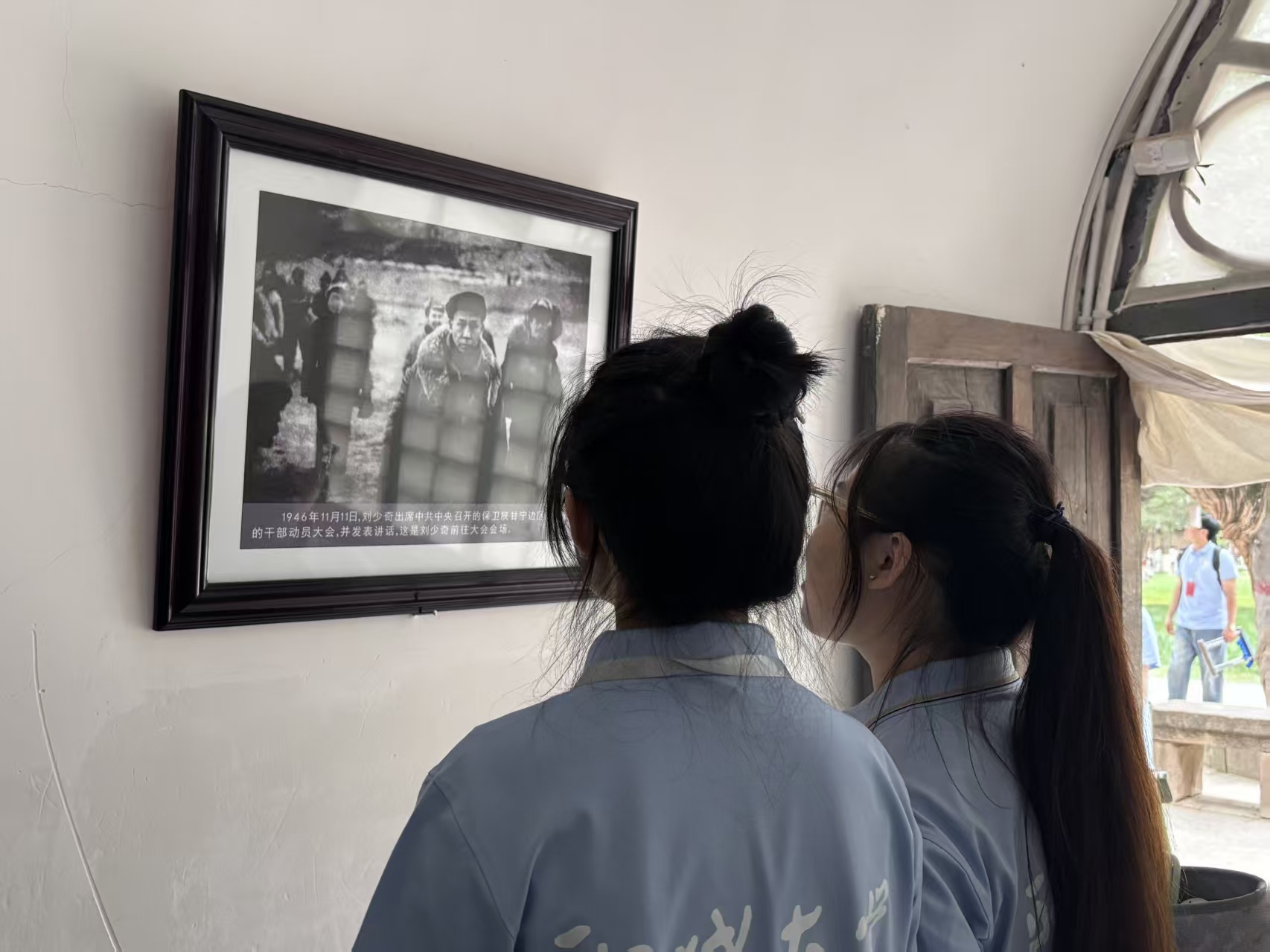 怀着这份崇敬,实践队步入枣园深处。在《延安窑洞有马列主义》的主题课堂上凝神聆听;驻足于毛泽东、周恩来等伟人曾居住的简朴窑洞前,凝视历经沧桑的照片与泛黄的文献,深刻体会革命先辈们在艰苦环境中坚定的理想信念与卓越的战略智慧。