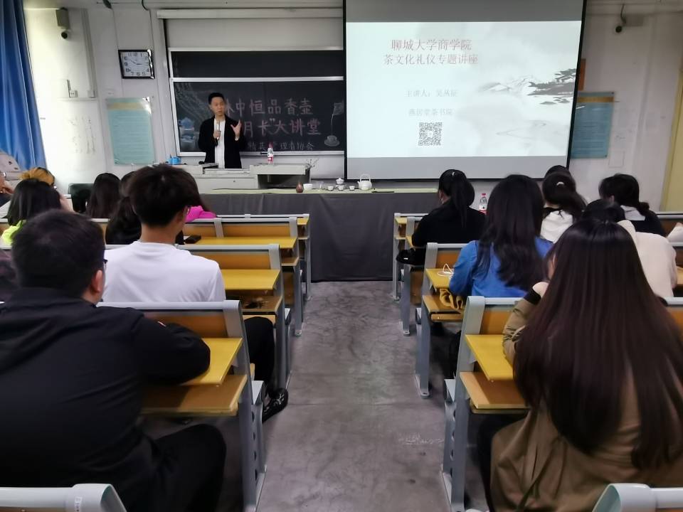 活动开始前,活动组织者们提前到场调试活动现场的多媒体,并做好了准备工作。在本次活动的主讲老师吴丛征老师到场之后,活动正式开始。首先,老师向大家普及了茶的起源和发展,并且简单介绍了“茶圣”陆羽以及他的著作。紧接着吴老师又讲解了礼仪与茶文化对人的重要作用,不管是为了陶冶情操还是修养身心,在闲暇时刻学习茶文化都是一个不错的选择。讲座进行到一半左右时,吴老师向大家进行了男士和女士敬茶的礼仪以及坐姿。在课堂互动时,台下的同学都积极的举手,希望上台得到老师的指导。老师随机挑选了一名男生和一名女生上台,学习了相关的礼仪。在活动的后半部分,吴老师向大家展示了焚香和烹茶的讲究,一挥一举间都是儒雅和娴熟。终于,在大家的不舍中“茶香讲堂”告一段落。