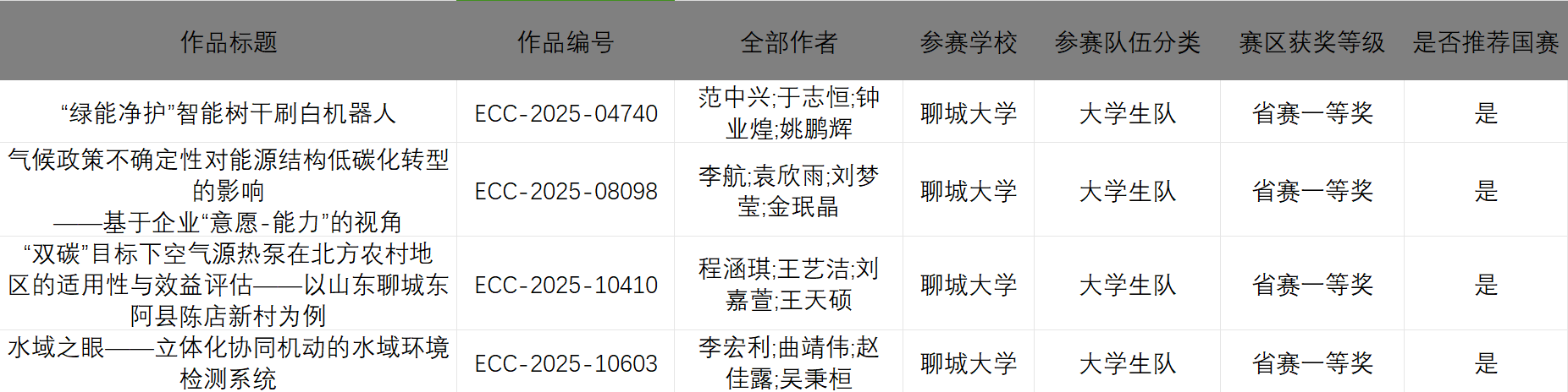 2025年4月,第十一届全国大学生能源经济学术创意大赛全国总决赛山东省赛区入围名单正式揭晓。我校4项作品进入国赛,取得了我校在该赛事中的历史最佳成绩。