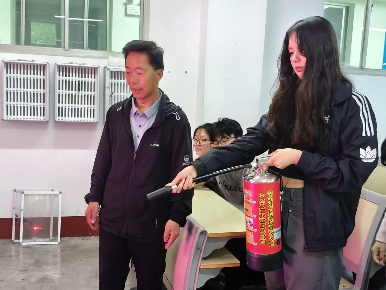 在消防安全管理中心工作人员的悉心指导与协助下,同学们依次进行了灭火器实训演练,严格按照“提、拔、握、压”的操作步骤,沉着冷静地对模拟火源进行扑灭,将理论知识转化为实了践行动,在演练中切实掌握了灭火器的使用技巧,提升了应对火灾的实战能力。