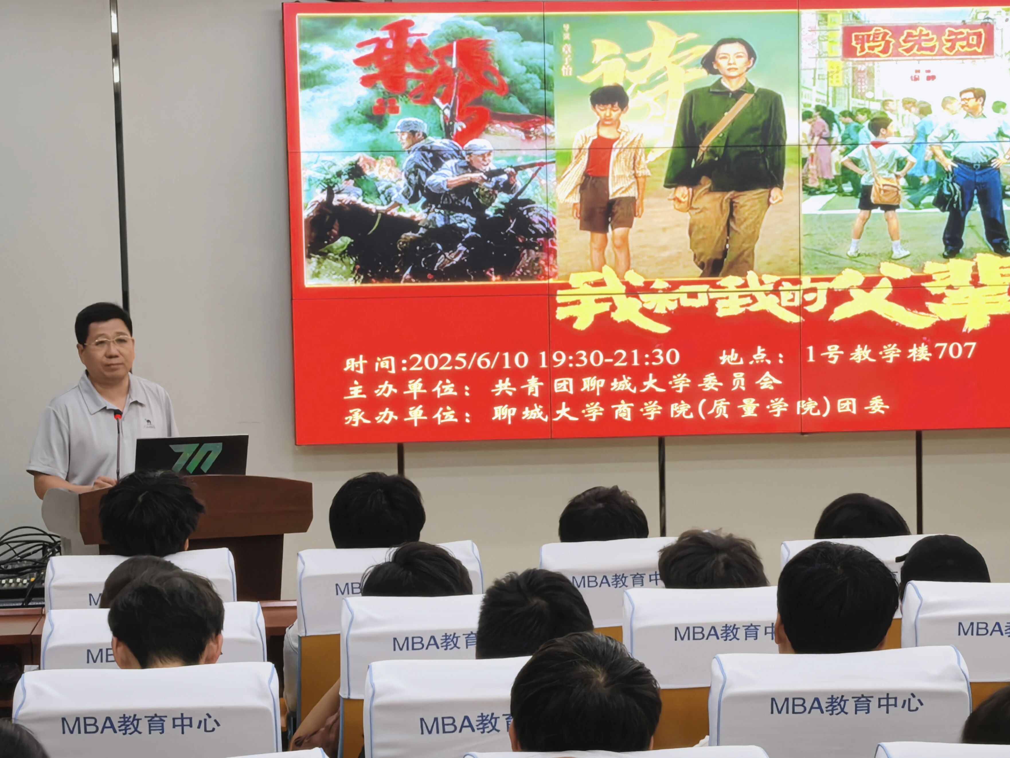 为深植家国情怀,赓续奋斗精神血脉,6月10日,555电影 组织2023级、2024级百余名学子于东校区1#707教室举办“星火影院”主题观影活动,集中观看时代篇章影片《我和我的父辈》,学院团委书记刘玉华担任主持人,第35期院级青马工程部分学员与2025年3月入党积极分子代表参与。