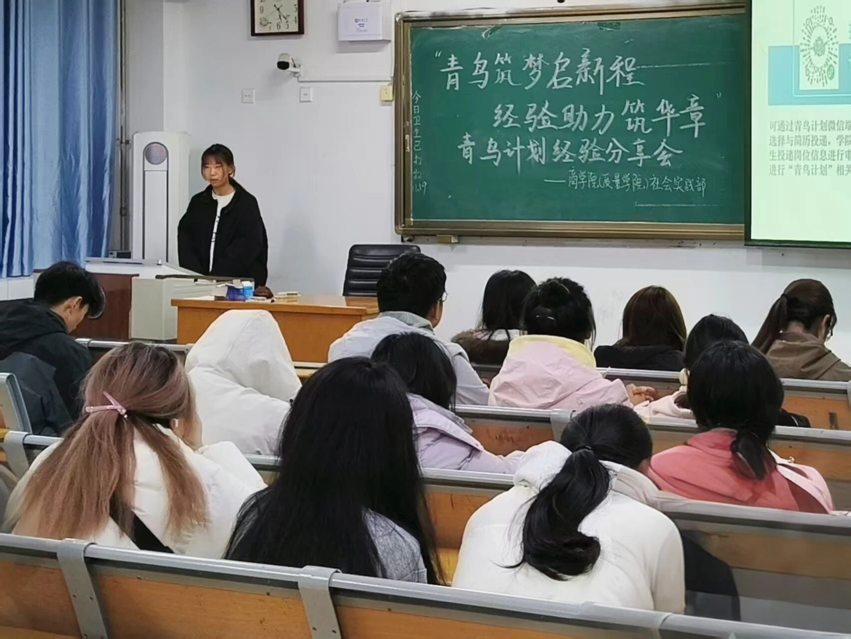 王涵围绕“青鸟计划”报名方式以及成长蜕变,分享实习经历,讲述从关注招募通知、成功获青州文旅局录用到投身实践平台的心路历程以及经验分享,她表示,此次实践有效实现了理论与应用的结合,提升了工作梳理与沟通能力,并呼吁与会学子积极投身“青鸟计划”,在实践中成长不断丰富自我。