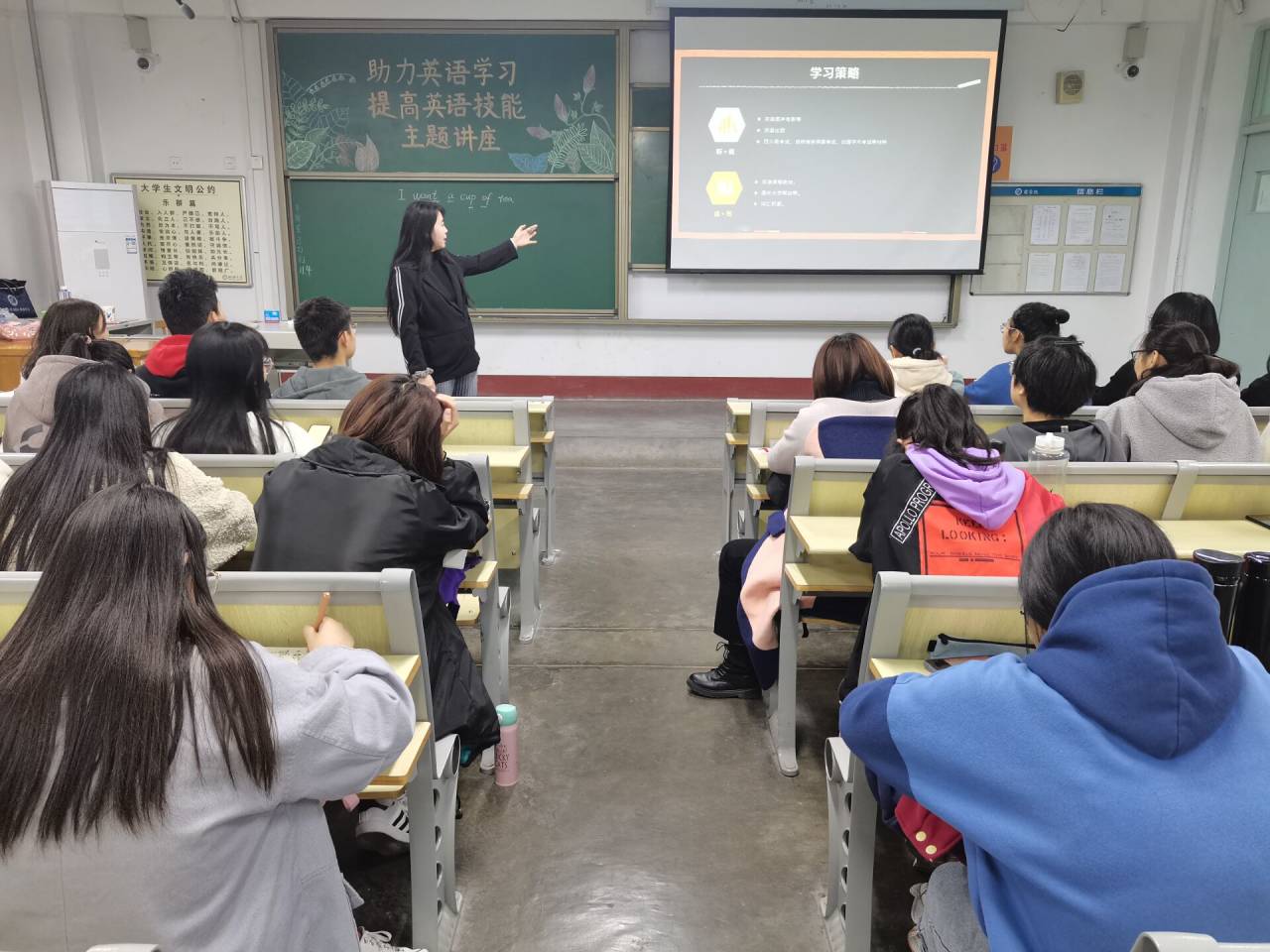 为了激发同学们学习英语的激情和热情,营造良好的英语学习氛围,提高同学们的应试能力和口语水平。11月5日,555电影 在东校区1#302举办“助力英语学习 提高英语技能”主题讲座。