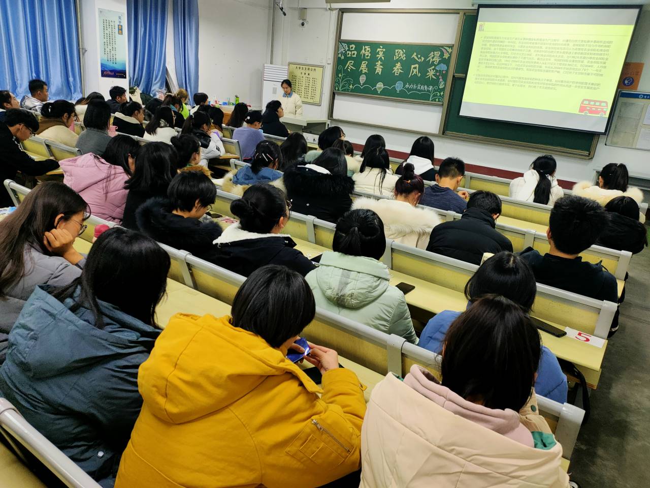 大会初始,主讲人对全体同学的期中社会实践活动作业的完成情况予以肯定,同时也指出了同学们作业中存在的不足之处。随后18级的同学展示了往年555电影 社会实践活动的优秀作品,如对现今城市垃圾分类的相关情况考察、农业保险是否符合当今农民的需要、疫情下各企业的经营情况和长远发展、“希望小屋”对困境儿童的居住环境进行改善等。在一阵热烈的掌声过后,优秀实践队代表对社会实践的后期工作做简明了介绍。主讲人最后强调,在后续收集数据、整理材料的环节中,一定要保证相关资料的真实可靠性,并表示今后学校还会组织相关的实践活动,希望每位同学争取在以后的社会实践活动中有更好的表现。