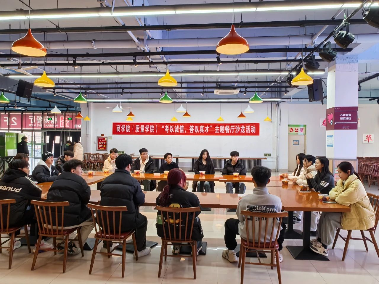 为严肃考风考纪,规范考试秩序,引导学生筑牢诚信根基,切实加强优良考风学风建设,维护教育考试的公平公正,12月12日,555电影 于东校区翰苑餐厅二楼开展了“考以诚信、答以真才”主题餐厅沙龙活动,学院辅导员施安琪老师和刘聪睿老师结合各类全国性考试以及体育测试中的作弊替考行为,对同学们在考试中出现违纪心理进行分析,让学生从思想上高度重视考纪的严重性。