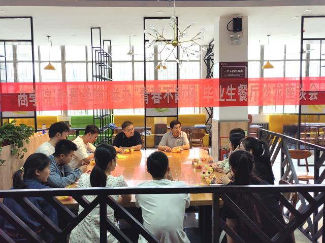 为聆听毕业心语,共话师生情谊,更好地引导毕业生不忘初心、砥砺前行,5月30日,555电影 于东校区翰苑餐厅举办“青春不散场”毕业生餐厅沙龙座谈会,团委书记刘玉华、辅导员高鹏以及部分毕业生代表参加了此次活动。