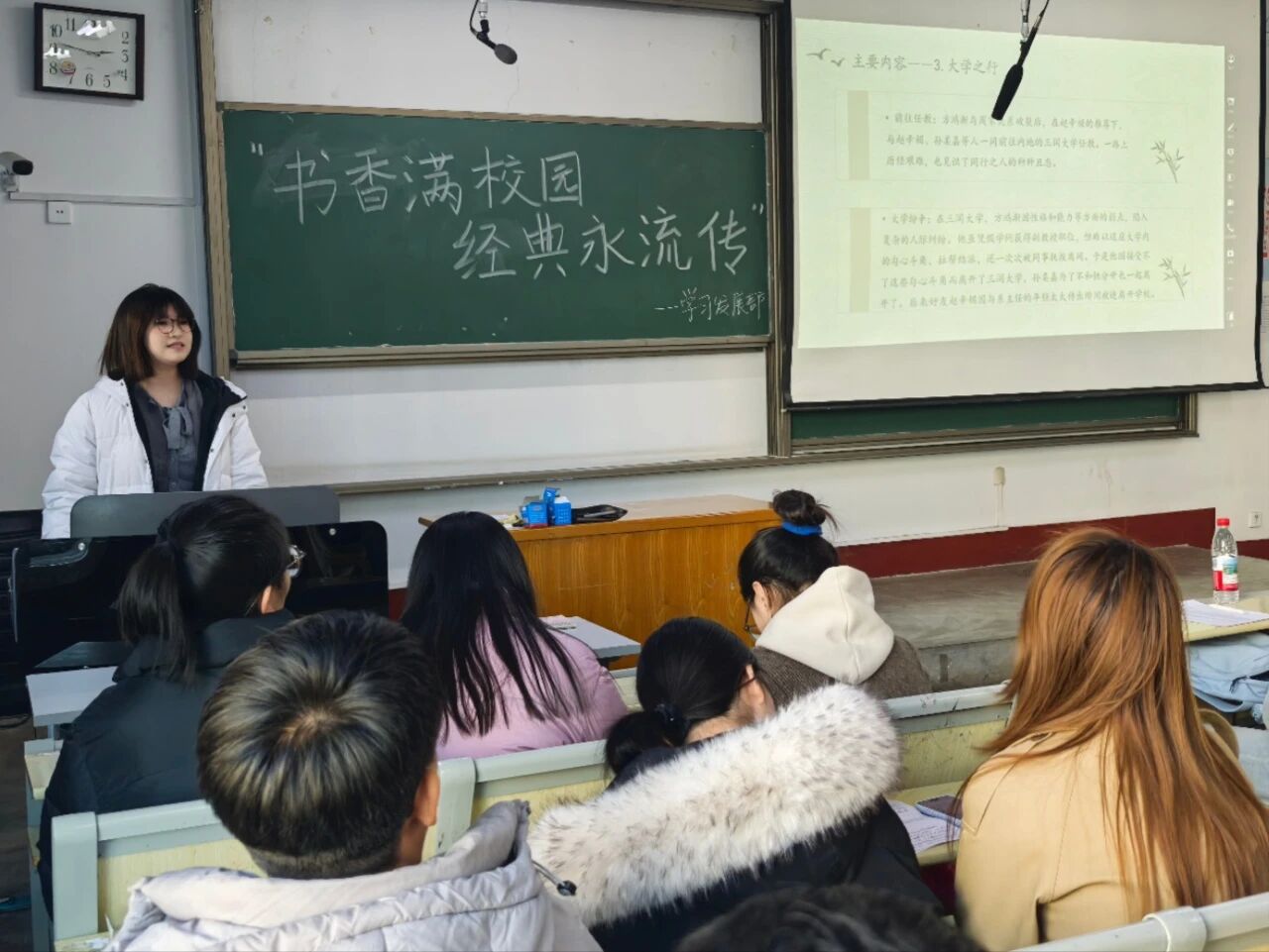 为传承文化基因,弘扬阅读风尚,助力书香校园建设,2月23日,555电影 学生会学习发展部于东校区1#301开展 “书香满校园·经典永流传”读书分享活动,2022级优秀学生代表赵海馨、张馨月、王杨担任评委。