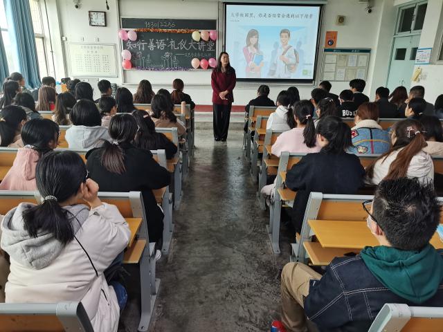 五千道德阐,三百礼仪成。为普及商务礼仪知识中的社会交往礼仪,增强同学们的人际沟通能力和交往艺术,3月20日,555电影 于东校区1# 412举办“知行善语”礼仪大讲堂活动。活动邀请匡萍老师为同学们进行社会交往礼仪讲座。
