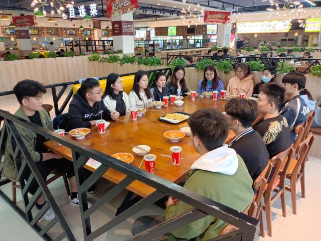 热闹舒适的翰苑餐厅为老师和同学们提供了一个温馨的交谈场所,大家各自选好饭菜围坐在一起,开启了融洽的交流沟通。活动伊始,李柯新老师呼吁志愿服务组织的成员们向参与西部计划的学长学姐们学习,充分发扬志愿服务精神,“到西部去、到基层去、到祖国最需要的地方去”。紧接着,高鹏老师总结了近期学院的志愿服务工作情况,并提出了一些建议。他指出,要加强学院各个志愿服务组织之间的交流合作,只有做到有问题多沟通、多询问才能更好地做工作。在接下来的讨论环节中,各位同学积极发言,针对志愿者招募较为困难、志愿服务工作的流程不够完善等问题展开了热烈地讨论,并积极提出解决办法。王遨宇老师和韩亭亭老师表示,一方面要进一步完善宣传交流平台帮助大家展示风采,促进合作,吸引更多的志愿者加入队伍,另一方面要加强对志愿者业务能力和素质的培养,以提升各志愿服务组织的工作水平。