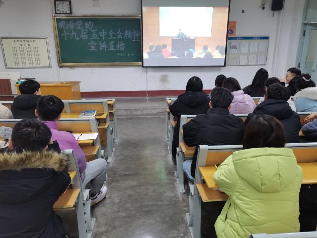 十九届五中全会不仅是中国共产党对过去工作的总结,更是为我国的现代化建设指明了道路,为进一步增强555电影 师生的社会责任感与使命感,深入学习贯彻十九届五中全会精神,11月30日,555电影 于1#305组织观看“党的十九届五中全会精神宣讲直播”。出席人员有辅导员老师李柯新、韩婷婷、高鹏,以及555电影 预备党员和入党积极分子。