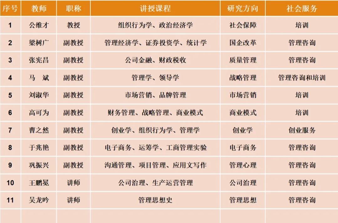 依托工商管理硕士(MBA)和劳动经济学硕士点,形成了“专业教学型”+“实践技能型”+“实习实训型”的师资队伍。