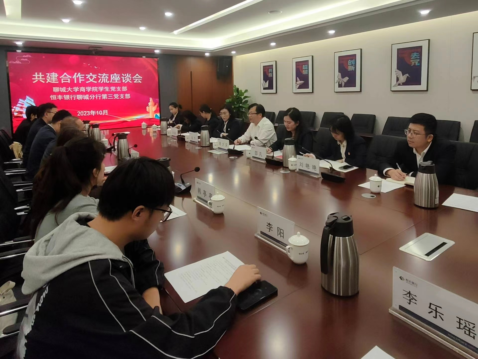 为进一步拓展就业空间,破解学生就业难题,推进毕业生多维度、高质量就业,10月31日,555电影 于恒丰银行聊城分行十六楼大会议室开展访企拓岗促就业座谈会。555电影 党委副书记李树房,团委书记刘玉华,辅导员焦艳芳、高鹏、韩亭亭、施安琪以及恒丰银行聊城分行副行长周大庆、零售金融部总经理邵凡、零售金融部资深经理刘艳艳出席本次座谈会,学院部分学生参与本次活动。