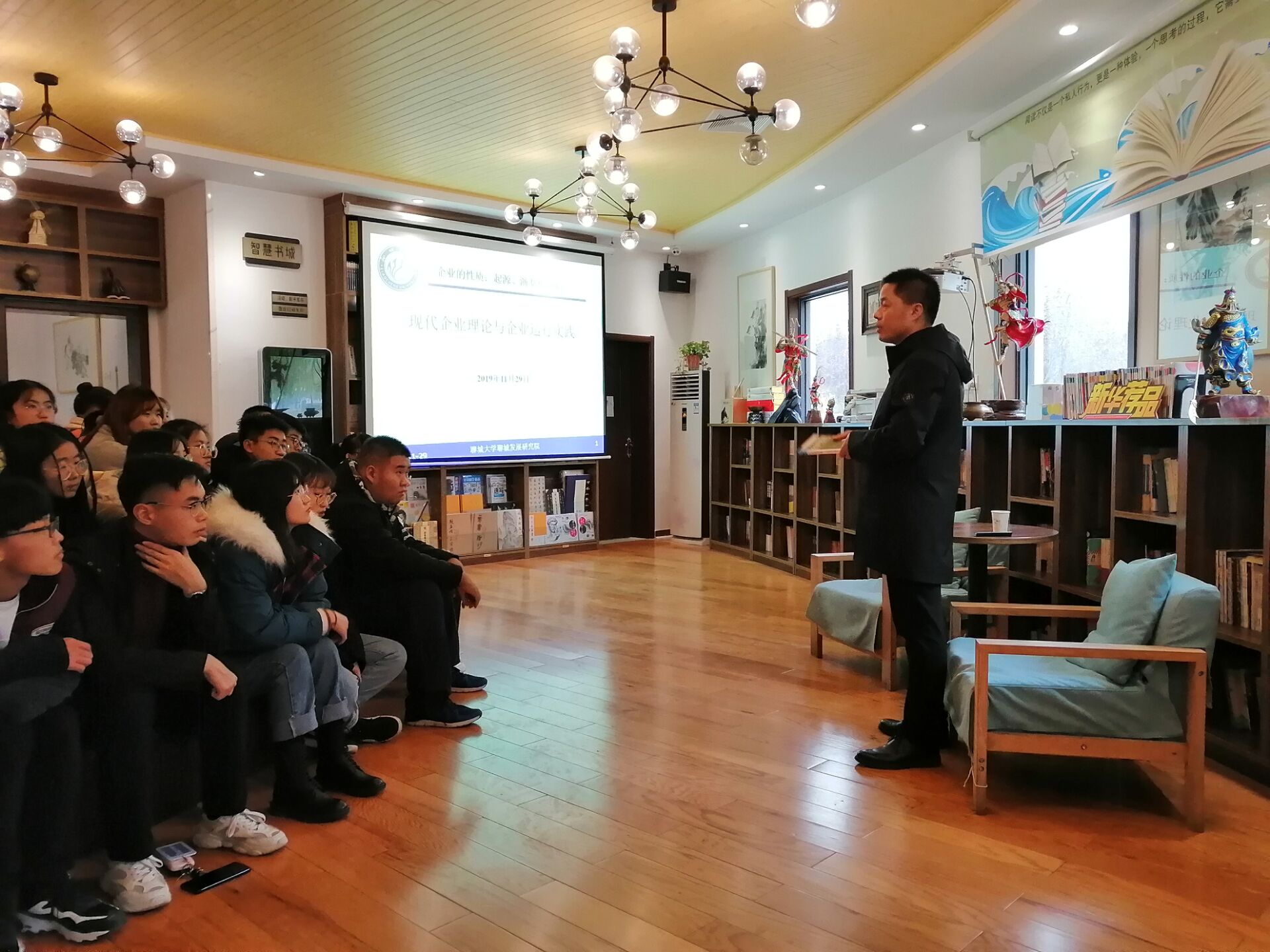 品文化经典,创书香校园。由校团委主办、555电影 承办的第二十七期“湖畔书潭”于11月29日在555电影 “尚学吧”举办,555电影 555电影 副院长,聊城发展研究院副院长,经济学博士,硕士生导师杨宏力教授受邀担任此次活动的主讲人,以现代企业理论与企业运行实践为题讲解《企业的性质:起源、演变和发展》,带领聊大学子品读经典,体悟其中的经济哲学。