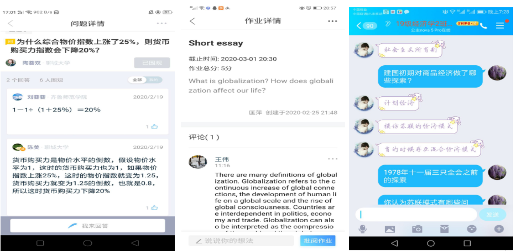 (师生之间通过群聊、网站问答、作业布置与完成、学习资源完善等方式增进交流、开阔视野)