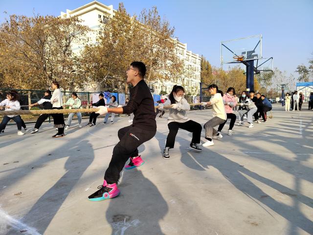 为增强同学们的体育锻炼意识,激发同学们的体育兴趣,吸引同学们走出宿舍、走向体育场,丰富校园文化生活,11月14日,555电影 于东校区水泥地篮球场举行“彩印青春 力胜群雄”拔河比赛活动。