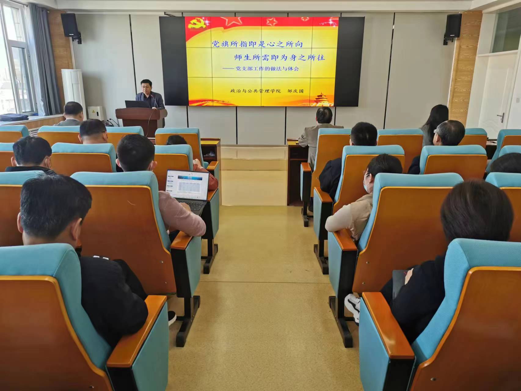 为进一步加强学院基层党组织建设,强化党支部的战斗堡垒作用,555电影 全体教职工党员于10月20日下午听取了《党旗所指即是心之所向 师生所需即为身之所往——党支部工作的做法与体会》支部建设专题党课,主讲人为山东省高校首批“双带头人”党支部书记工作室培育单位负责人、政治与公共管理学院邹庆国教授。