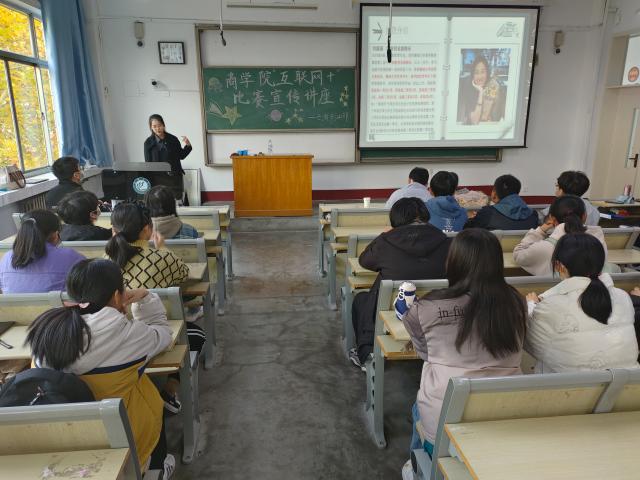 活动伊始,主讲人根据比赛流程,从自我介绍、“互联网+”大赛简介、参赛经验、通知解读以及参赛意义五个方面进行了讲解,介绍相关赛事流程以及注意事项,并向大家展示有关答辩的技巧,同学们认真聆听并积极响应。该环节氛围轻松愉快,为同学们提供了极大帮助。同时,主讲人鼓励大家积极参与到大赛实践中去,并对比赛的准备、选题、申报、推进和结束各个环节做了详细阐述,结合党的二十大的有关理论,指出比赛选题要结合官方文件,符合市场潜力需求。此外,主讲人还讲述了创业计划书的重要性,通过具体的项目向同学们介绍相应的合作流程、问题反馈和市场竞分析等步骤。最后,同学们纷纷表示,此次讲座解答了他们的疑惑,为下一步参加比赛奠定了坚实的基础。