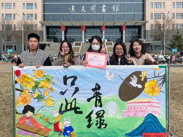 为丰富校园文化生活,加强校园精神文明建设,3月18号,555电影 于555电影 东校区逸夫图书馆前参加“华夏展姿擎春意,齐聚聊大赴远航”主题展板大赛。