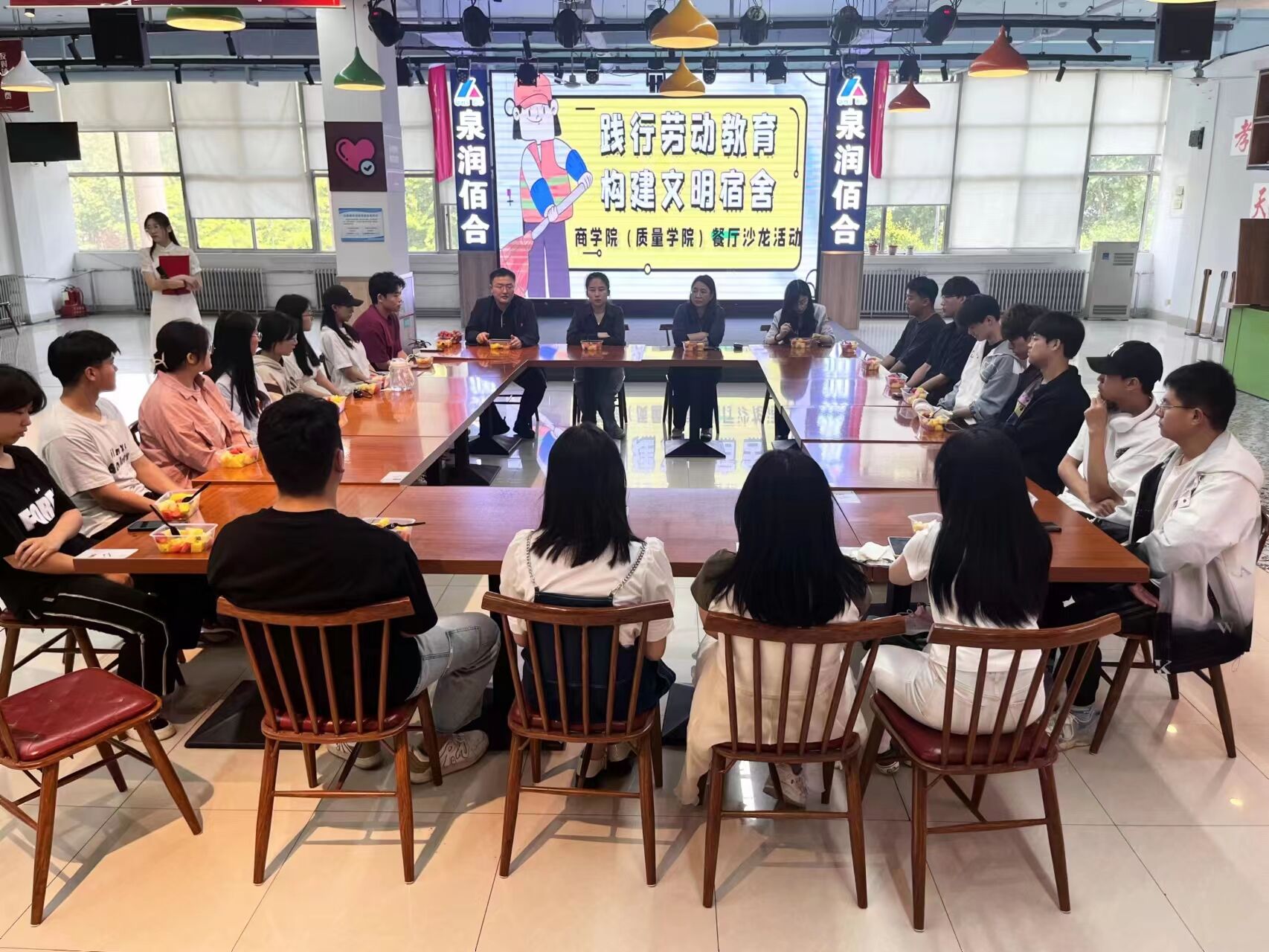 为进一步加强学生的自我安全意识,培养学生良好的生活习惯,提高内务管理能力,增强同学们的动手能力,提升自身劳动素养,5月11日,555电影 于东校区翰苑餐厅举办“践行劳动教育 构建文明宿舍”餐厅沙龙活动。辅导员焦艳芳、巨梦薇、高鹏、韩亭亭及部分舍长们参加了此次活动。
