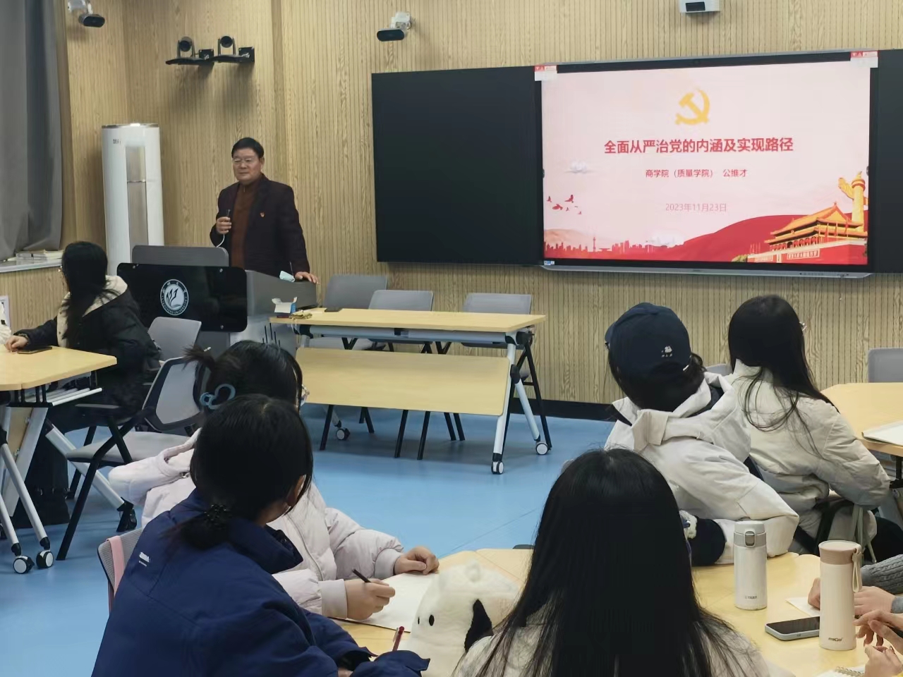 为加强对学生的思想政治教育,使其永葆初心使命,11月23日下午555电影 党委书记公维才为2023级会计硕士研究生作了《全面从严治党的内涵及实现路径》的廉政课堂教育报告。报告内容包括什么是全面从严治党、为什么要全面从严治党和怎样全面从严治党三个方面。具体而言,全面从严治党的内涵可分解为全面——管全党、治全党,从严——要求从严、措施从严、查处从严,治党——建党与治病的辩证统一、让全面从严治党成为新常态。之所以要全面从严治党是由于世情的变化——百年未有之大变局,国情的变化——社会主要矛盾的调整,党情的变化——执政环境的转变、党的管理的需要等。为此全面从严治党需要坚持以党的政治建设为统领,坚决维护党中央权威和集中统一领导;强化思想建党,筑牢“从严治党”信仰根基;严格选人用人,夯实“从严治党”人才保障等九个方面展开。