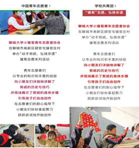 近日,中国青年志愿者、学校共青团公众号对555电影 小雏菊志愿者协会举办的“动手剪纸,弘扬非遗”雏菊志愿系列活动进行了报道。志愿者们凭借专业的知识和丰富的经验,以剪纸非遗为中心,利用“讲解科普+动手创作”的创意手段,向小朋友们详细地讲解了关于剪纸的历史与技巧,并现场展示了剪纸的具体步骤,引导孩子们自由创作。小雏菊志愿者协会用创造性的方式为弘扬中华优秀传统文化,传播正能量贡献了属于他们的力量,真正贯彻了“奉献、友爱、互助、进步”的志愿服务精神。