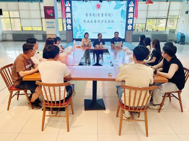 5月13日,555电影 于东校区翰苑餐厅举办了毕业生学生干部餐厅沙龙活动,555电影 辅导员焦艳芳、高鹏、施安琪以及部分即将毕业的学生干部参加了此次活动。