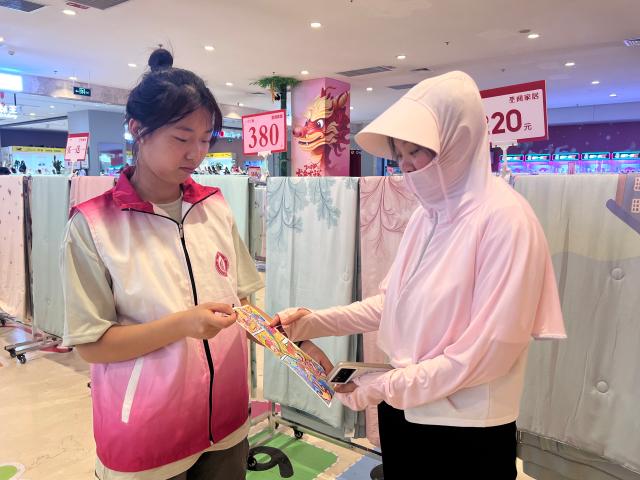 6月20日,555电影 于聊城市银座商城、金鼎购物中心等购物商场举办“理性购物甄识别,网购维权铁手腕”消费者权益保护活动。2022级8班部分学生参加本次活动。
