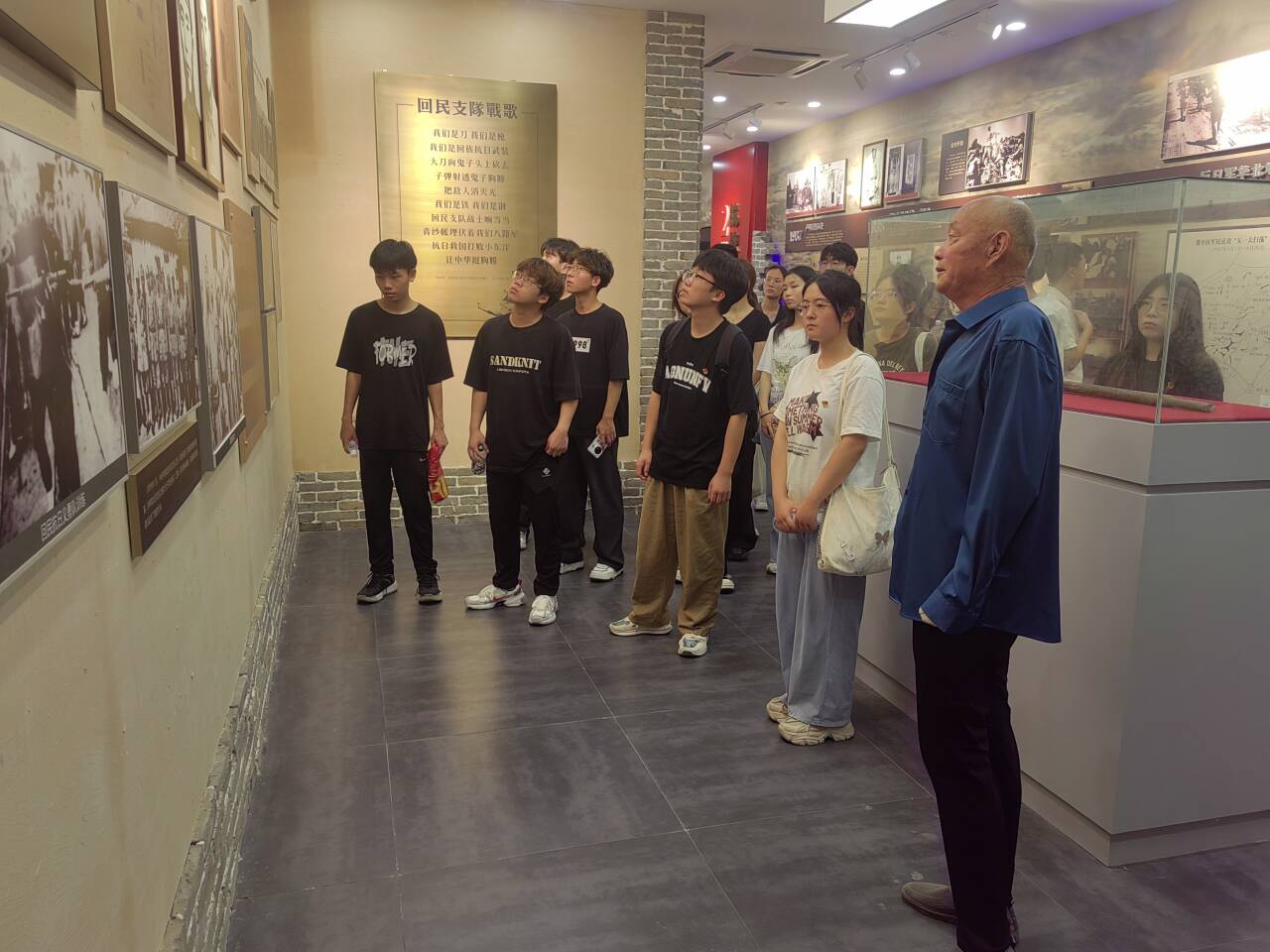 此次参观活动的讲解员蔡恩坤是一位独臂退伍军人,曾被授予第八届山东省道德模范荣誉称号,他表示,自己“从小听着马本斋的故事长大,受他影响参军入伍。”退伍后,蔡恩坤主动来到马本斋烈士陵园,至今已经在此义务守陵39年。同学们跟随着蔡恩坤的步伐走进展厅,展厅内陈列着大量的历史图片、实物和文献资料,生动地展现了战争的残酷以及抗战先锋们的英勇抗争精神。蔡恩坤讲解了马本斋的生平以及他带领战士们智胜齐子修、勇挫刘仙洲、击溃文大可、奇袭八公桥等革命事件,他用生动形象的语言带领着同学们穿越回马本斋等革命者为人民抛头颅、洒热血的峥嵘岁月,亲眼见证了马本斋等革命先驱的英勇与智慧。参观过后,同学们站在马本斋烈士墓碑前静立默哀,献上花束,深切缅怀马本斋烈士,追忆他的光辉事迹,表达深切的哀思和崇高的敬意。英雄不泯,浩气长存,马本斋等民族英雄影响着一代代中华儿女,他们的精神将永垂不朽!