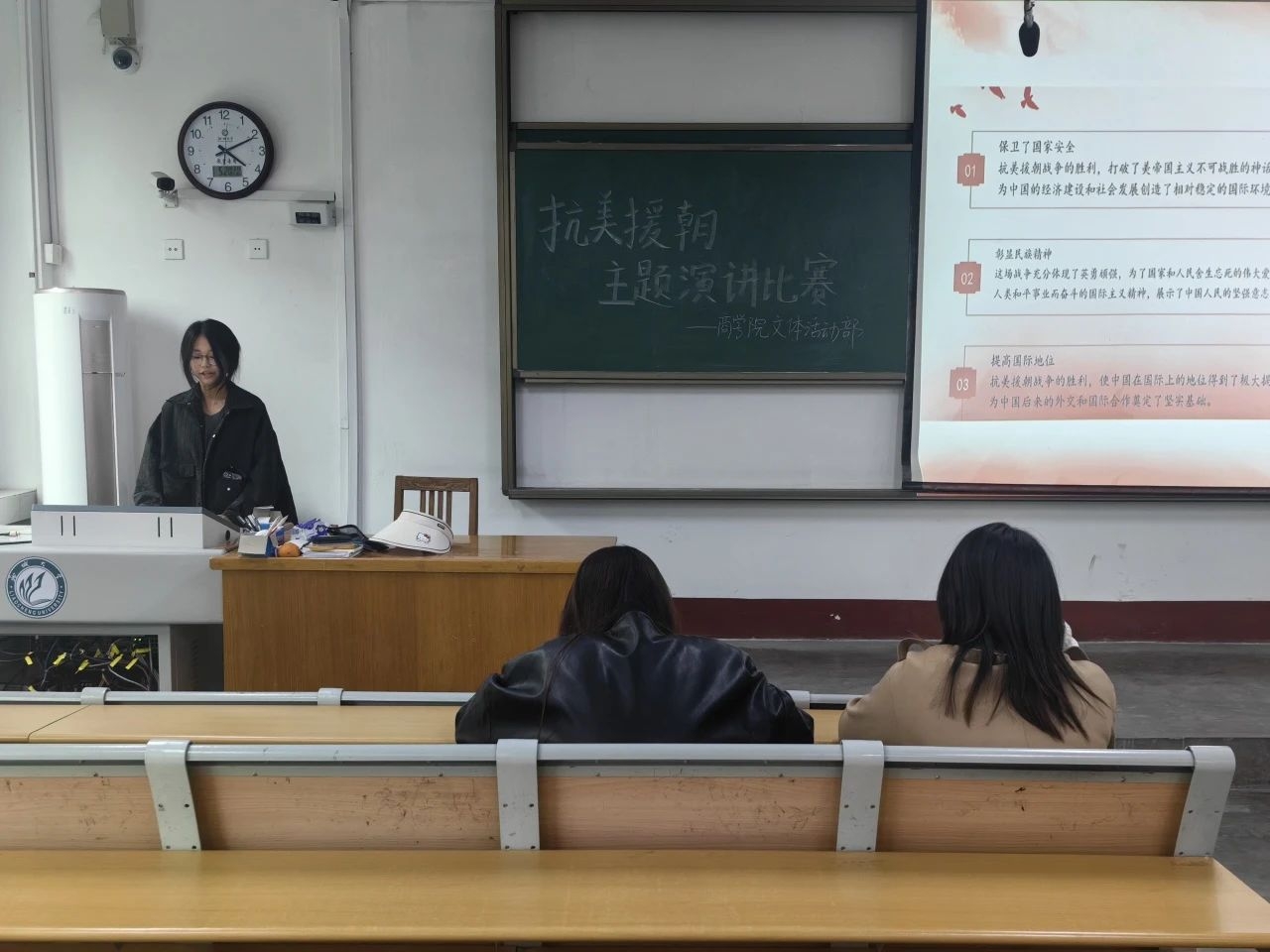 为致敬保家卫国的英雄前辈,激发青年学生爱国主义热情,10月20日,555电影 于东校区1#205举办“抗美援朝英雄志 演讲颂歌扬英魂”演讲比赛,文体活动部部分成员担任评委。