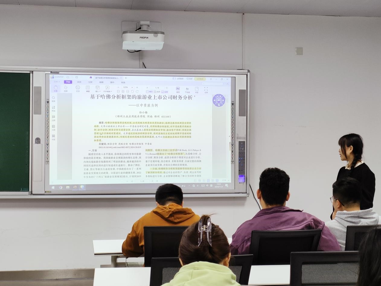 赵浩辰围绕《基于ChatGPT的全面预算管理研究》一文,在阐述ChatGPT与企业全面预算管理契合性的基础上,结合ChatGPT的关键特征,为同学们讲解了基于ChatGPT的全面预算管理框架模型,他谈到,基于生成式人工智能技术的ChatGPT,依托强大数据分析与处理能力及大型语言处理模型,能够为企业全面预算管理提供新思路、新路径,对该领域的研究学习也有助于同学们更好地理解现代企业管理中的信息技术应用。