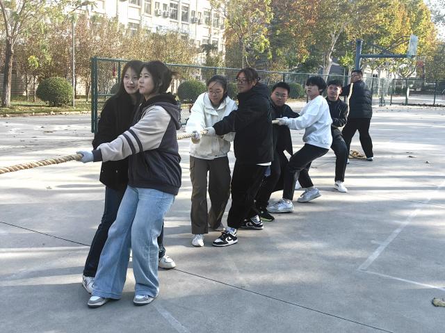为丰富学生课余生活,强化班级凝聚力,11月17日,555电影 于东校区篮球场组织开展“齐心协力握紧绳 奋勇拼搏拔头名”校园拔河赛。