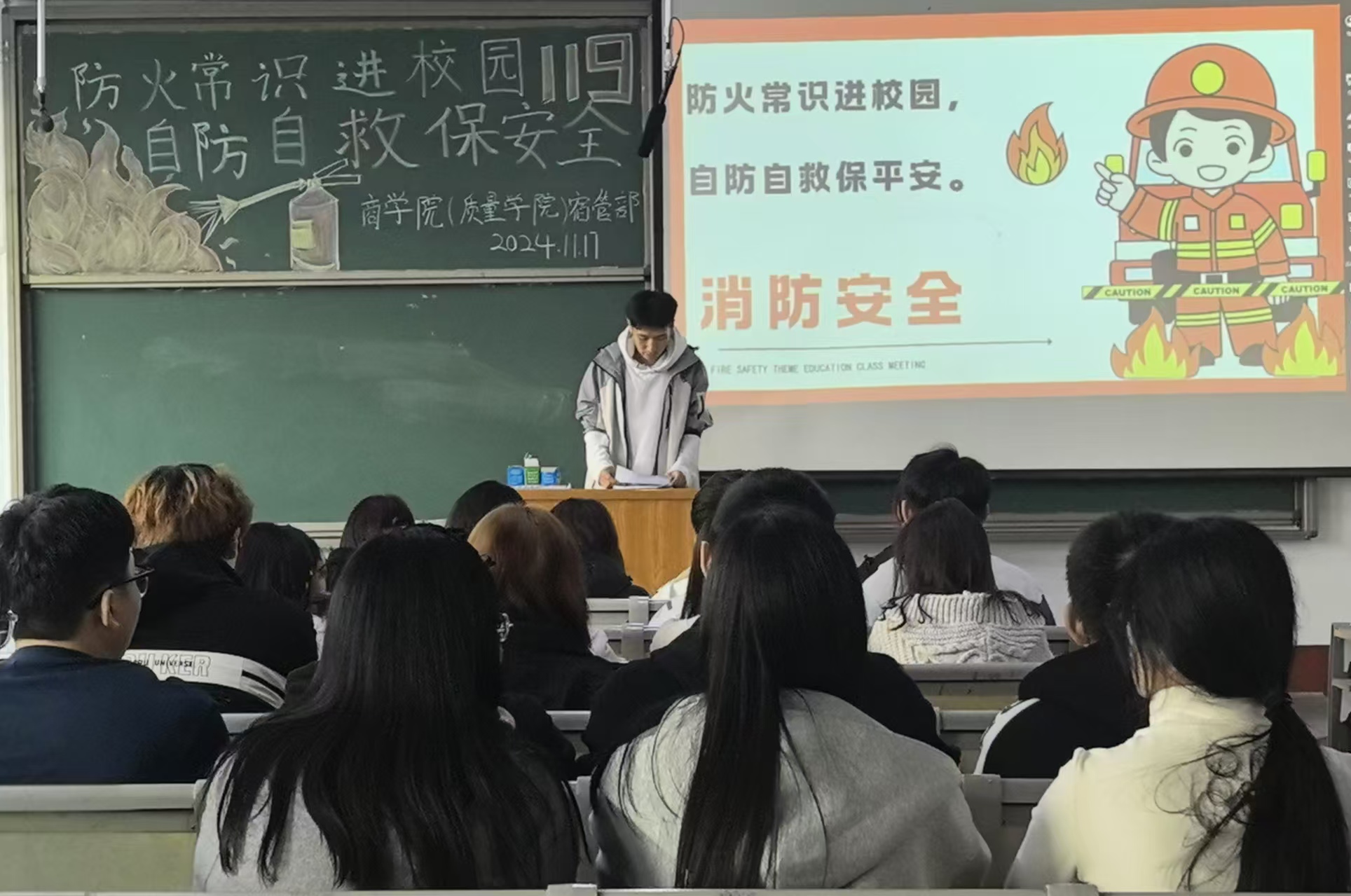 为深入推进校园消防安全宣传工作,进一步提升学生消防安全保护意识,11月17日,555电影 (质量学院)于东校区1#301开展“防火安全进校园,自防自救保安全”消防知识主题讲座,学院宿管部学生代表仇洲烁及60位同学参加本次活动。