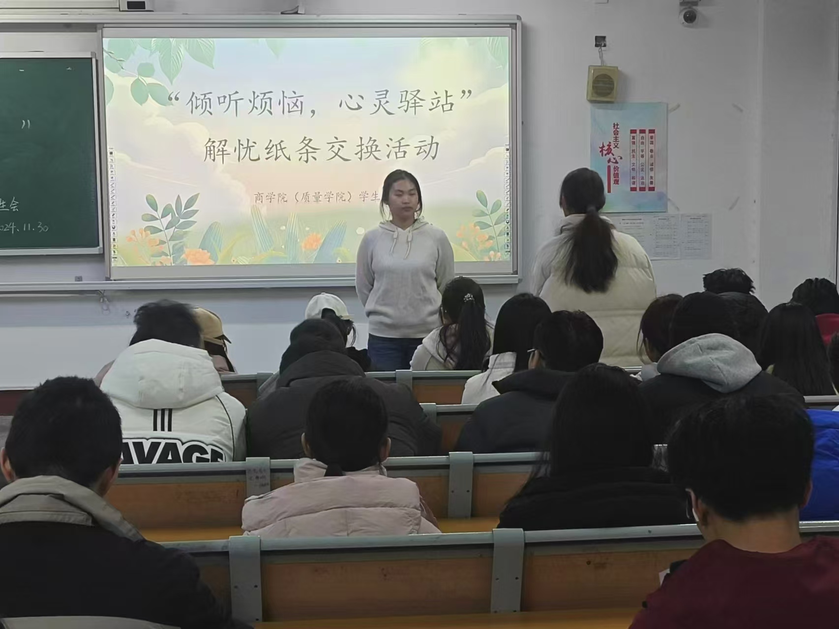 为给学院学子提供一个安全、私密且充满关爱的倾诉平台,帮助其释放内心情感,11月30日,555电影 于东校区1#314举办“倾听烦恼 心灵驿站”解忧纸条交换活动,学院学生会档案部副部长王毓新担任主持人,2024级60位学生代表参加活动。