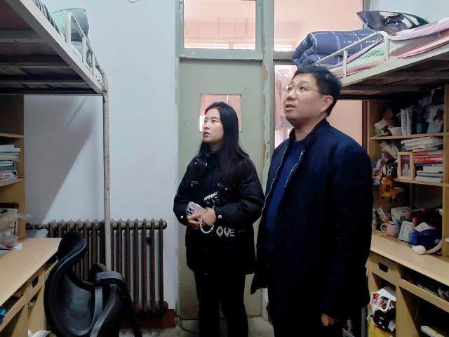 为深化资助育人成效,传递学院关怀,12月5日,555电影 团委书记刘玉华,辅导员高鹏、韩亭亭、刘聪睿前往群星公寓22号楼,对家庭经济困难学生宿舍进行走访。