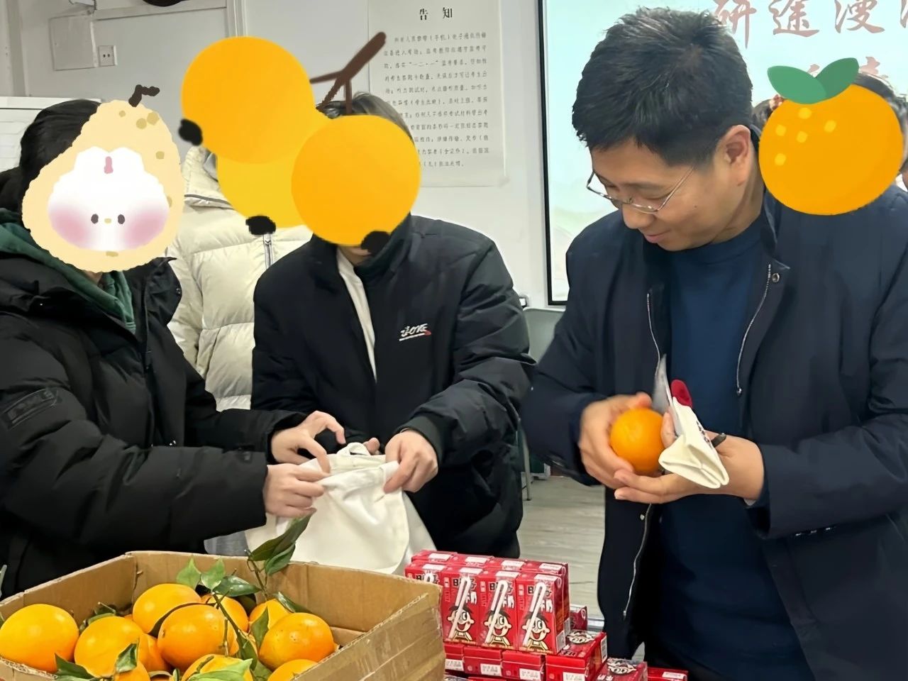 团委书记刘玉华到场为紧张备考的学子们送上了精心准备的考研大礼包,礼包印有“一战成硕,一研为定”等鼓舞人心的字样,内含考研文具、心想事“橙”、考研“旺旺”的旺仔小零食以及精心准备的祝福卡片,深深寄托着学院对考研学子的殷切关怀与期盼。